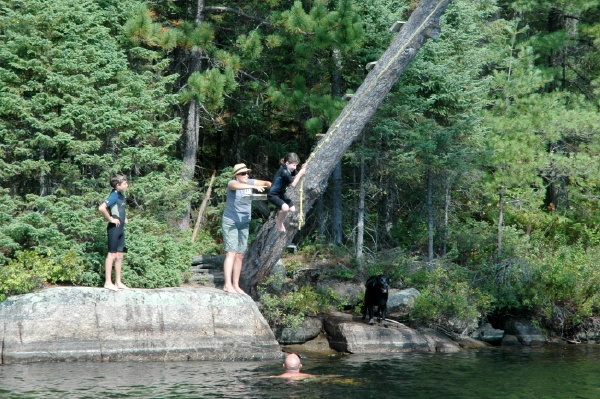 Scarlet going off the rope swing.