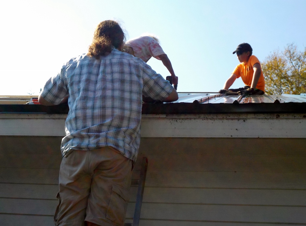 OK, so, I have been waiting all summer to put on a metal roof. I wanted to jack and level the cabin before the roof went on, but it rained all summer. Never drying up enough to crawl around in the dirt with jacks. The weather improved by the middle of September so I went to work.